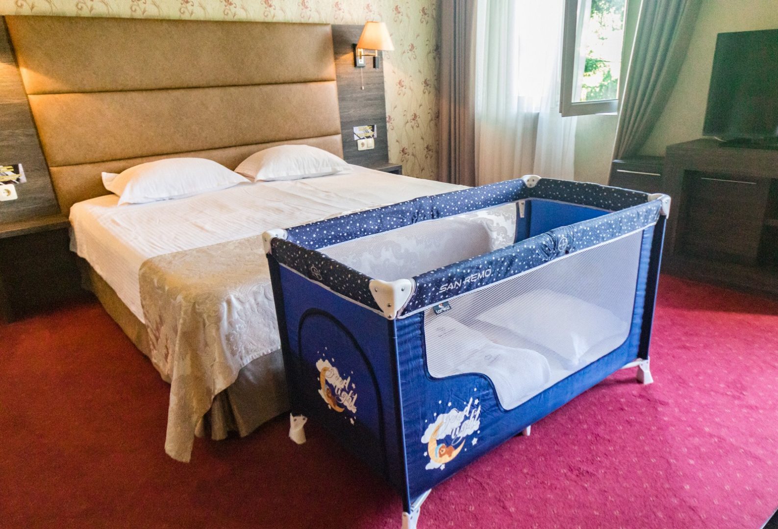 Хотелът разполага със 110 луксозни стаи, минерални басейни, джакузита, лоби бар, сладкарница, ресторант с лятна градина, фитнес, тенис корт, паркинг и много други удобства.