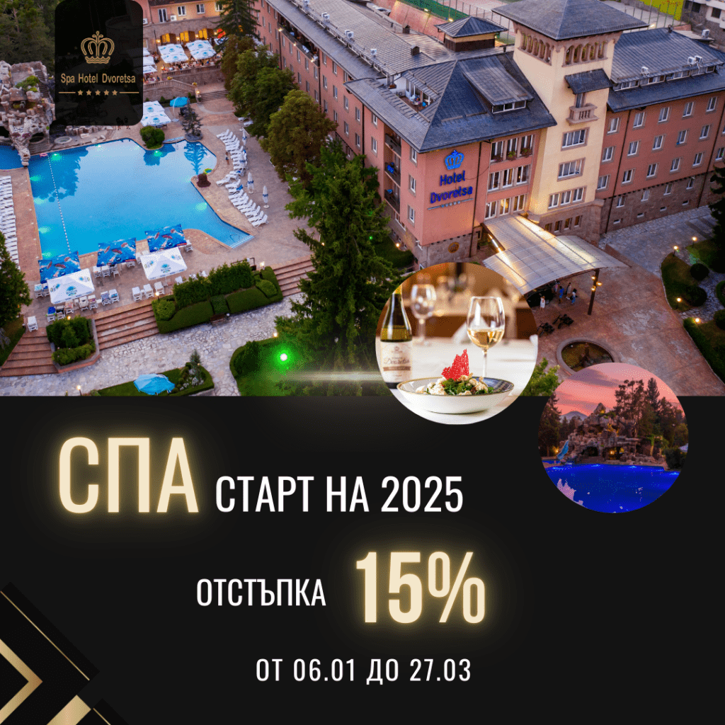 Резервирайте своята СПА почивка с 15% отстъпка за делничните дни (неделя-петък) до 27.03 в СПА Хотел „Двореца“.