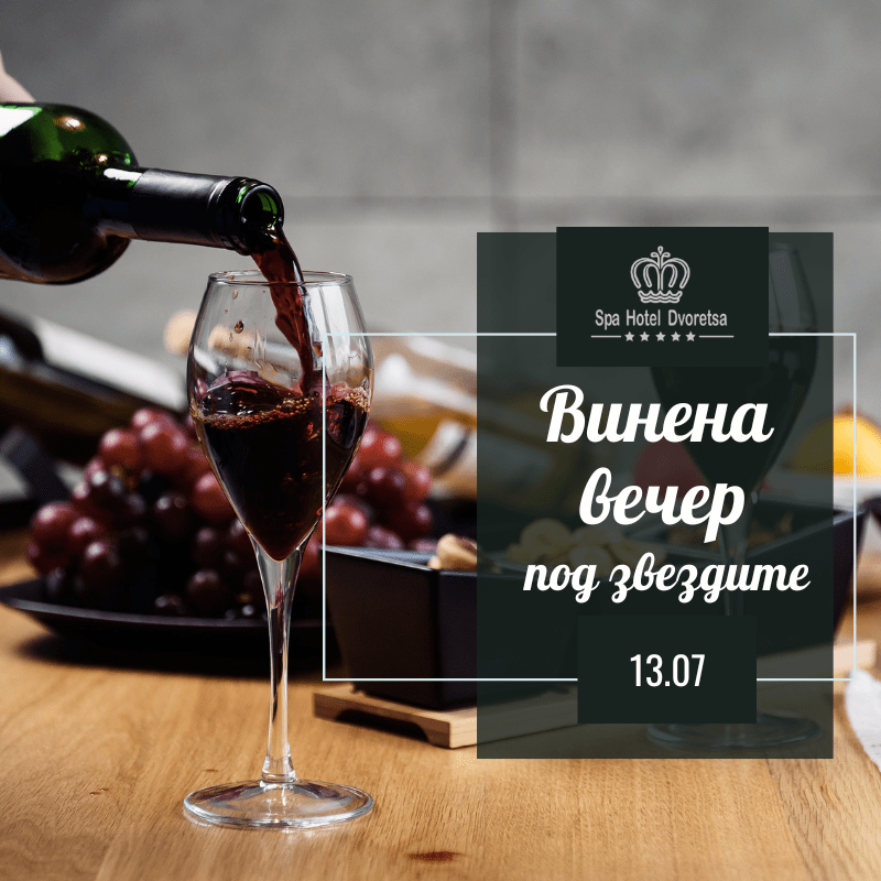 Под звездното небе на нашата тераса, в компанията на сомелиер от BONONIA ESTATE, ще бъдете пренесени в ароматния и приказен свят на виното. Ще имате възможност да дегустирате специална селекция вина, съпътствана от внимателно подбрани сирена и изискани десерти.